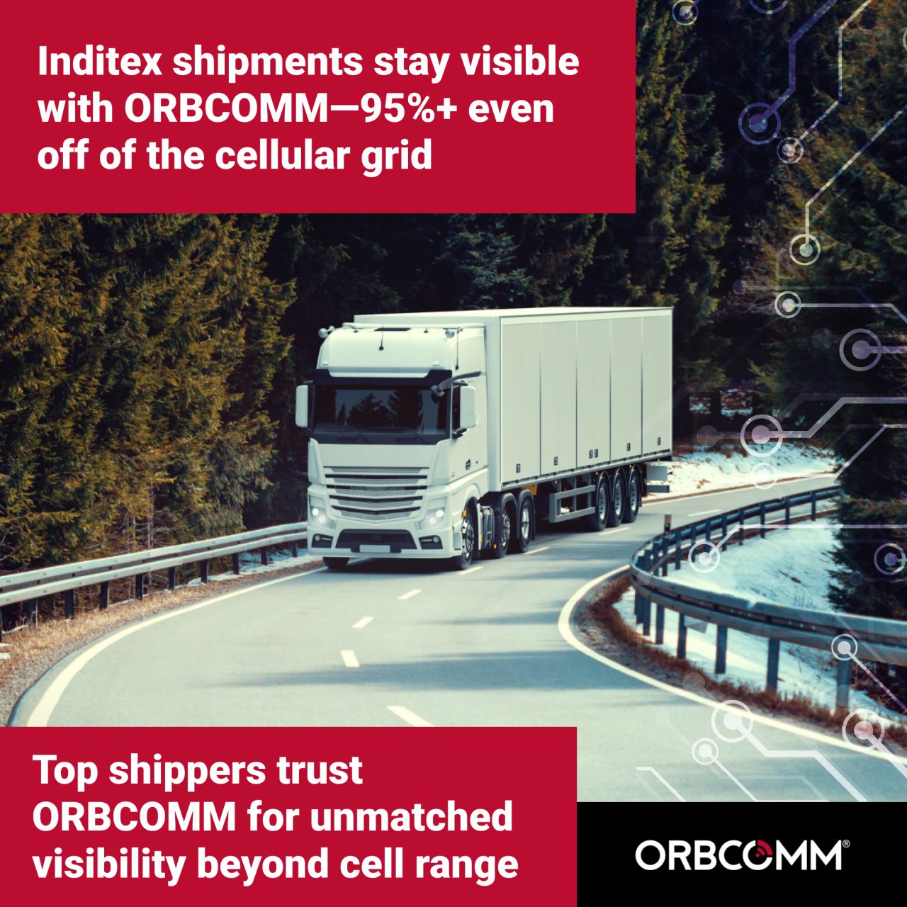 ORBCOMM is a global technology company that helps transportation, agriculture, and industrial businesses track and manage their assets. Our team supported their marketing efforts through campaign-specific LinkedIn ads.